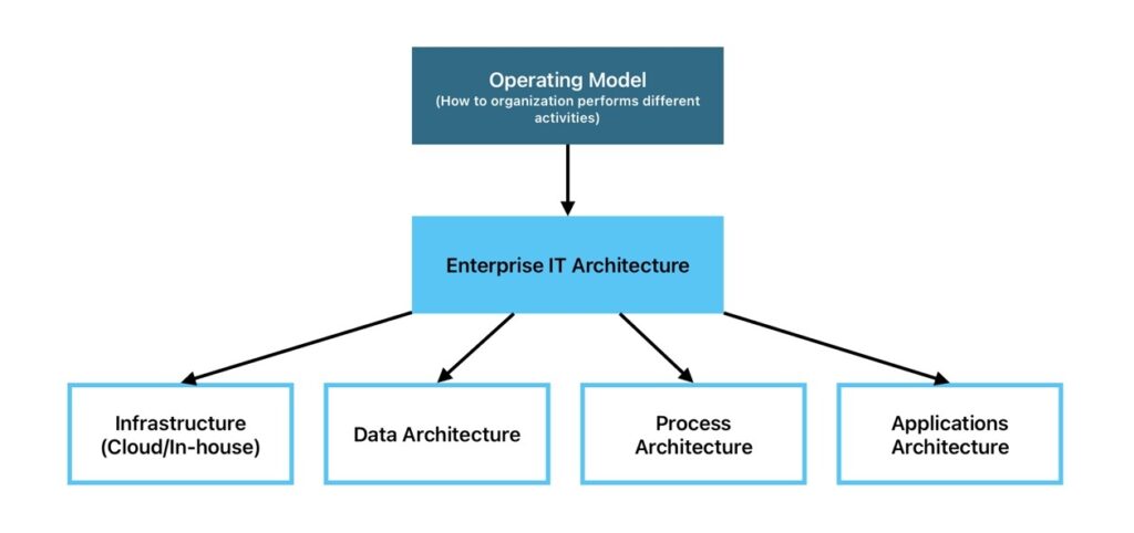 To execute IT alignment effectively, we start by determining the business’s Operating Model. It is the blueprint that defines how a company organizes its core processes and data to deliver value. It describes how the company executes that strategy day-to-day (e.g., “we use one central billing system for all units”)